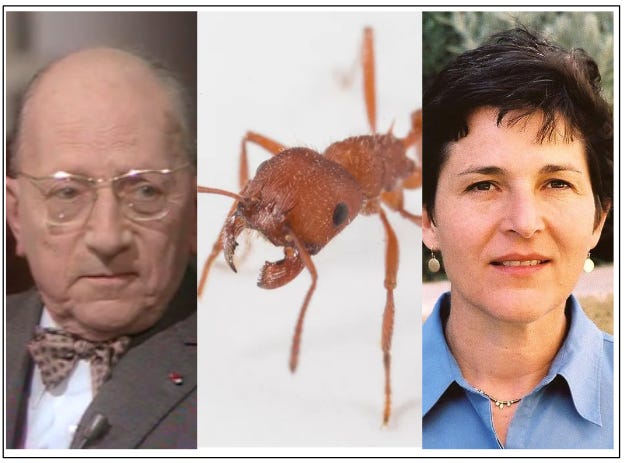 Fig. 1: Pierre-Paul Grassé, harvester ant, and Deborah Gordon